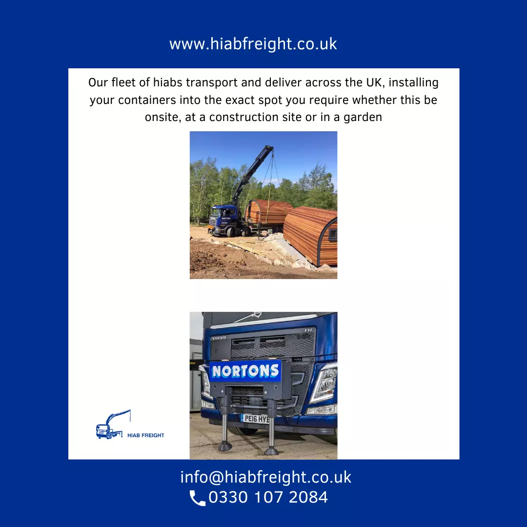 Our fleet of hiabs transport and deliver across the UK, installing your containers into the exact spot you require whether this be onsite, at a construction site or in a garden